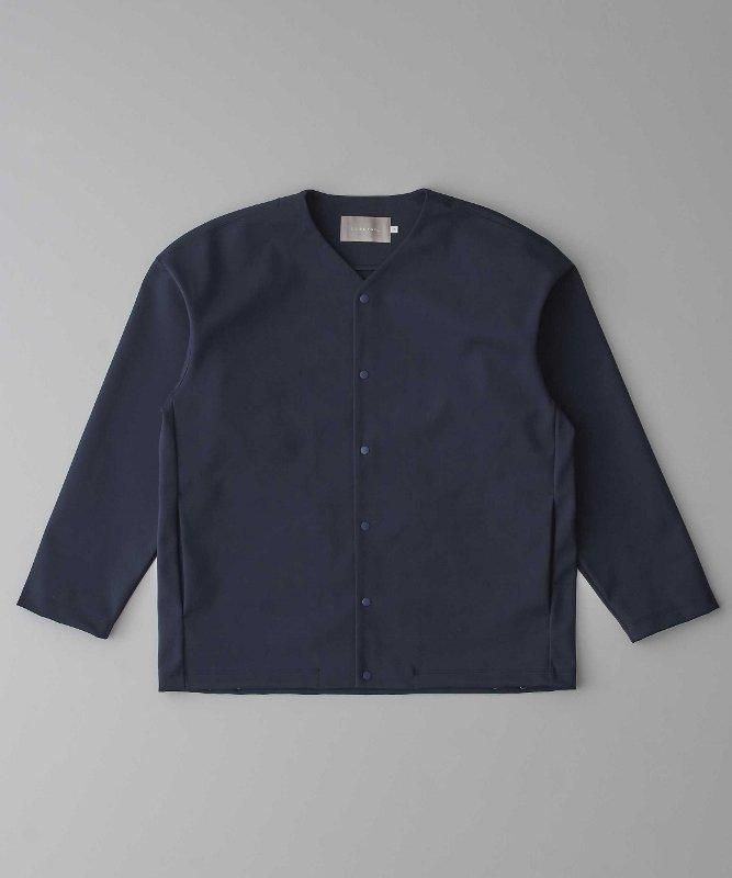 蝶理(株)の高伸縮機能糸TEXBRID®をハイゲージで編み立てたダンボール素材を用いたカーディガン。軽量で伸縮性に優れながらも、形状記憶的な張り感とコシを併せ持つことで、シルエットがしっかり出る特徴があります。定番として毎シーズン展開しているアイテムを今シーズン初めてTEXBRID®で作りました。肌寒い季節にはミドラーとして、春先からは羽織りアウターとして長く重宝するアイテム。シンプルさを追求したブランドならではの個性を表現した非常にCURLY&Co.らしい一着に仕上がっています。