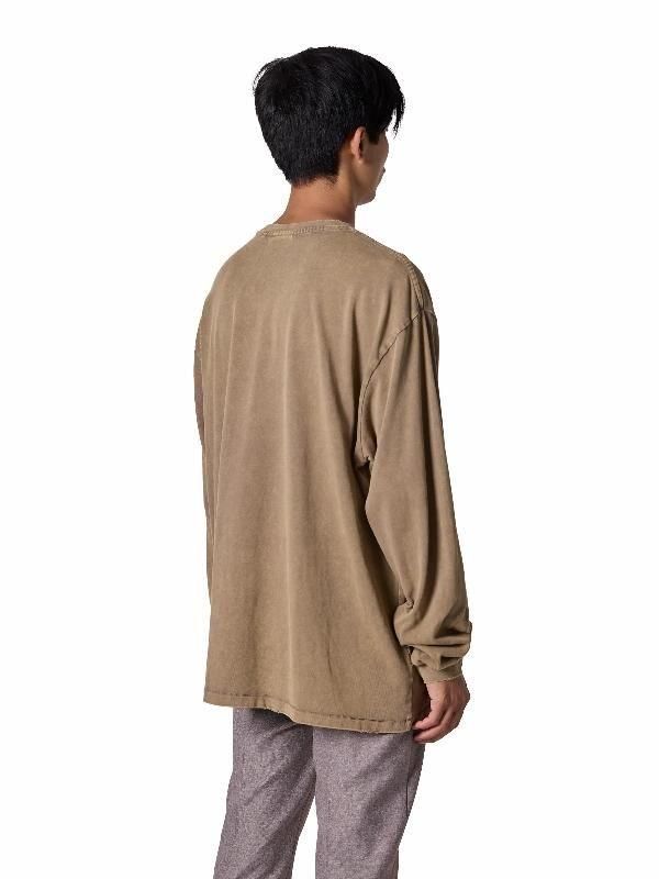 ★SandWaterr 2025 A/W★ コットン100%の天竺を使用しています。特殊なエイジング加工を施しています。ゆとりあるバギーシルエットが特徴的です。 素材:COTTON 100% 2(M) 着丈73 身幅68 肩幅55 袖丈63.5 3(L) 着丈75 身幅70 肩幅57 袖丈65