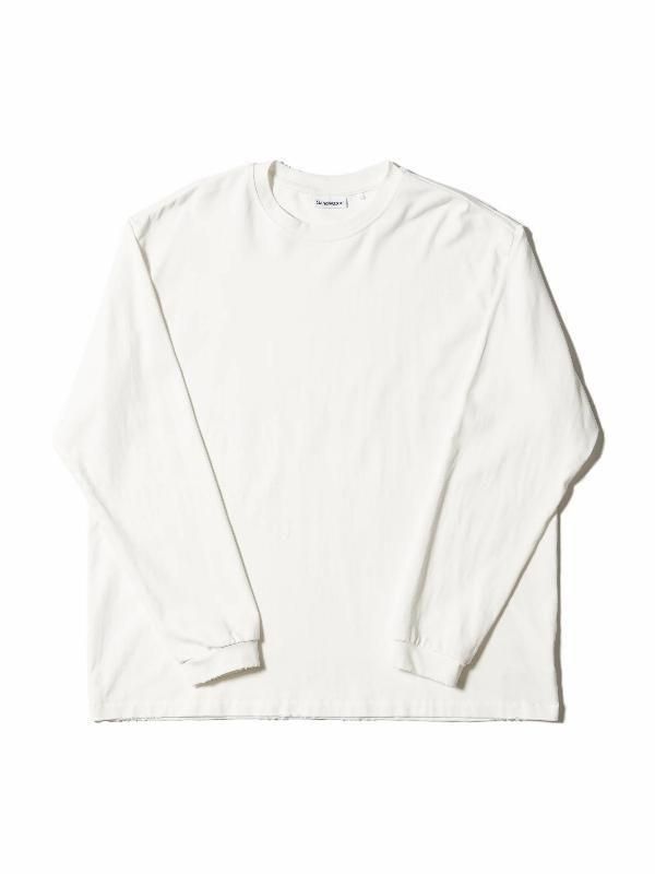 ★SandWaterr 2025 A/W★ コットン100%の天竺を使用しています。特殊なエイジング加工を施しています。ゆとりあるバギーシルエットが特徴的です。 素材:COTTON 100% 2(M) 着丈73 身幅68 肩幅55 袖丈63.5 3(L) 着丈75 身幅70 肩幅57 袖丈65