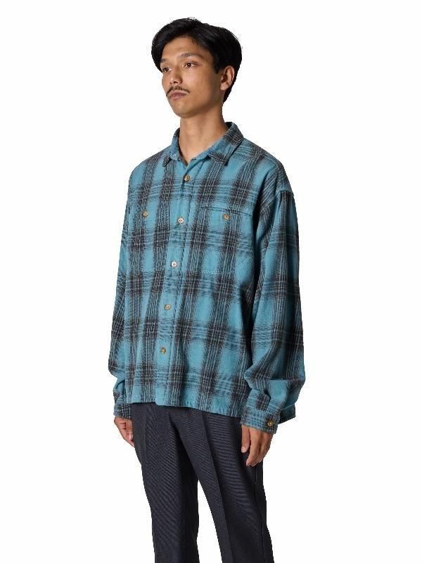 ★SandWaterr 2025 A/W★ コットン100%の起毛フランネル地を使用しています。左右非対称なデザインが特徴的で、製品染め加工を施し、古着の様な愛着ある風合いにしています。程よいゆとりを持たせたボックスシルエットにしています。 素材:COTTON 100% 2(M) 着丈75 身幅65 肩幅55 袖丈65 3(L) 着丈77 身幅67 肩幅57 袖丈66.5