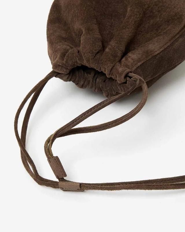 ★hobo 2025 A/W★ 両サイドのコードを絞るとボディ全体が錐形になるドローストリングポーチです。手下げと肩掛け2通りで使用できます。豚革は独特の繊維構造により非常に高い耐久性と耐摩耗性に優れており、過酷な条件下でもその性能を維持することが可能です。柔軟かつ軽量であるという特徴も大きなメリットの一つで、重さが負担になることはなく非常に快適です。 material:PIG LEATHER saiz:W13×H22.5×D11cm 3L MADE IN JAPAN