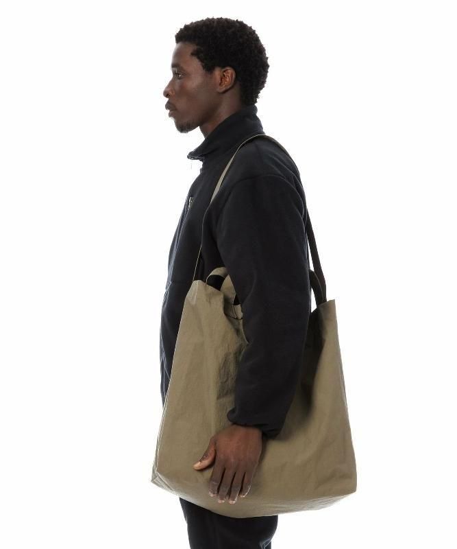 ”昆布”のような特殊生地を使用した、3WAYタイプの大きめバックです。生地の特徴は圧倒的な軽量感と独特なハリとシワ感、そして高級感のあるドライタッチとマットな風合いがあり、更に撥水性を持ち合わせた特徴素材です。デイリーにもアウトドアシーンにもマッチした大きめバッグです。