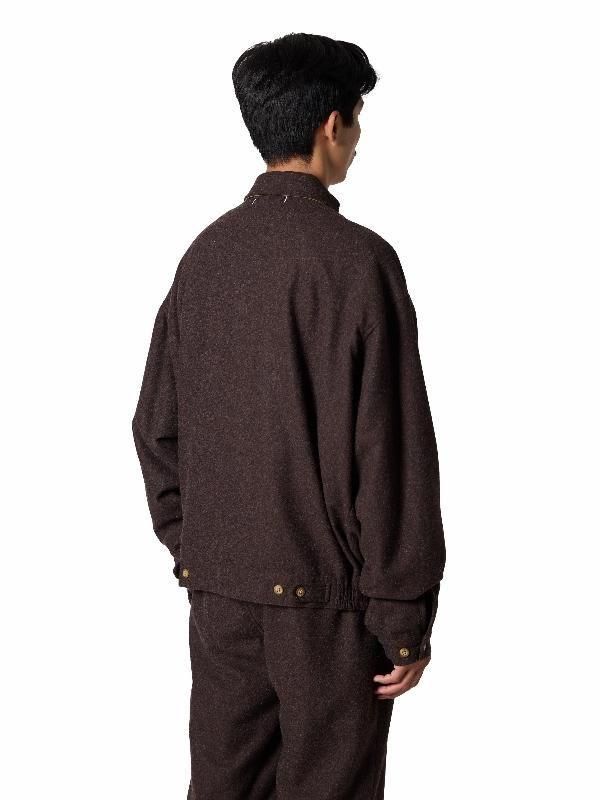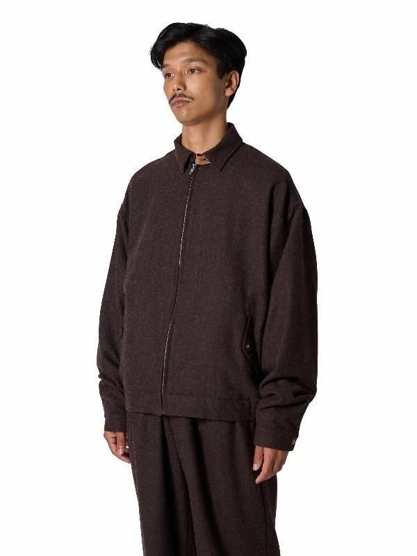 ウール、化繊がミックスされた起毛ツイルの生地を使用。微起毛でしなやか且つ、程よい肉厚さで耐久性にも優れています。製品にウォッシュ加工を施し、程よいシワが出るよう仕上げています。襟裏にはシープレザーを合わせて高級感を向上させています。裾のリブはボタンで調整できます・身幅にゆとりあるボックスシルエット。