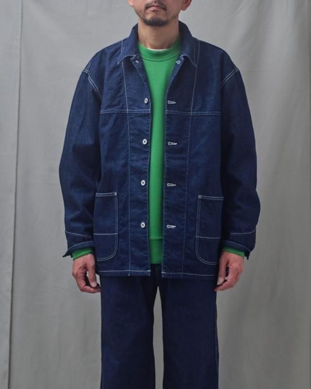 60年代から70年代初頭頃のデニムカバーオールをモチーフに、ショルダーヨークやポケットの形状でモダンにアレンジしている