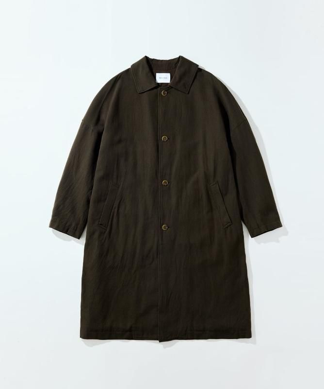 ★WELLDER 2025 A/W★ FABRIC サージの彫りが深く、凹凸感がはっきりと分かる風合いのウールサージに洗いをかけソフトな風合いながら、張り感が出ていてコシがある素材です。 STYLE 極端に肩を落とし、完全なボクシーシルエットのステンカラーコートです。 素材:ウール100% 3(S) 着丈113 肩幅81.5 身幅70.5 袖丈49 4(M) 着丈115 肩幅83 身幅72.5 袖丈50