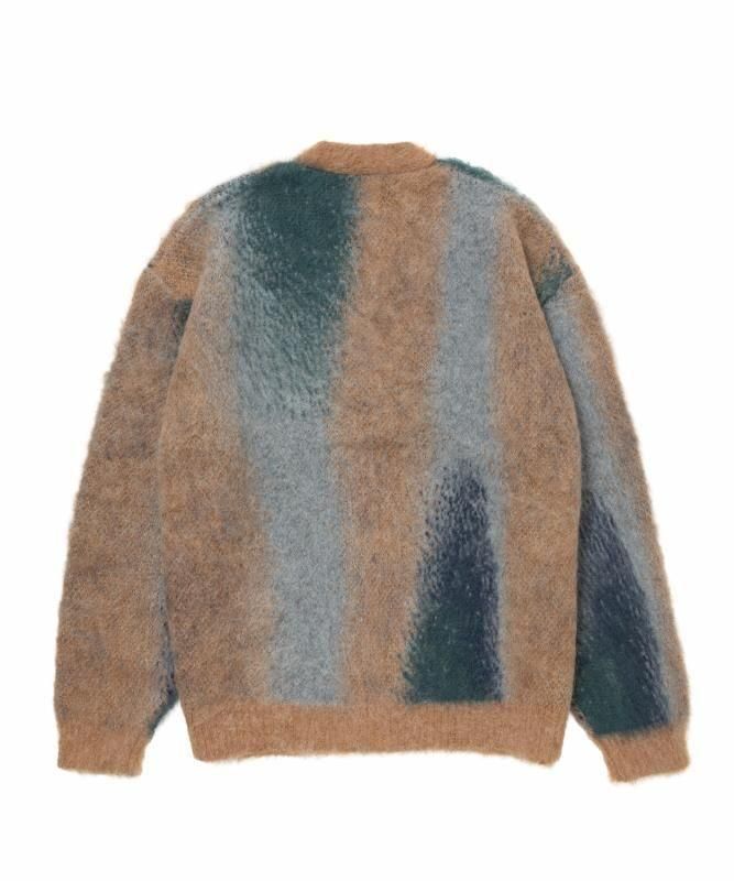 ☆ROTTWEILER 2025 A/W☆ オリジナルの柄を作成し、ニットに落とし込んだカーディガンです。厚手なのでアウターの様に着用出来ます。 素材:モヘア12%,ウール18%,ナイロン50%,アクリル28% M 着丈67 身幅63 肩幅54 袖丈56.5 L 着丈69 身幅65 肩幅56 袖丈58