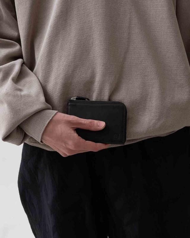 ★hobo 2025 A/W★ L字型ジップタイプのコンパクトウォレットです。内側はカードが視認しやすいよう考慮したクリーンな設計になっており、薄いシルエットながら高い収納力を備えています。レザー部分は馬の傷跡さえも生かし、しっとりとした質感の独特な表情に仕上げることで経年変化も楽しんでいただけます。 コイン:1 / 札入れ:1 / カード:1 material:HORSE LEATHER saiz:W11.5×L8.5cm MADE IN JAPAN