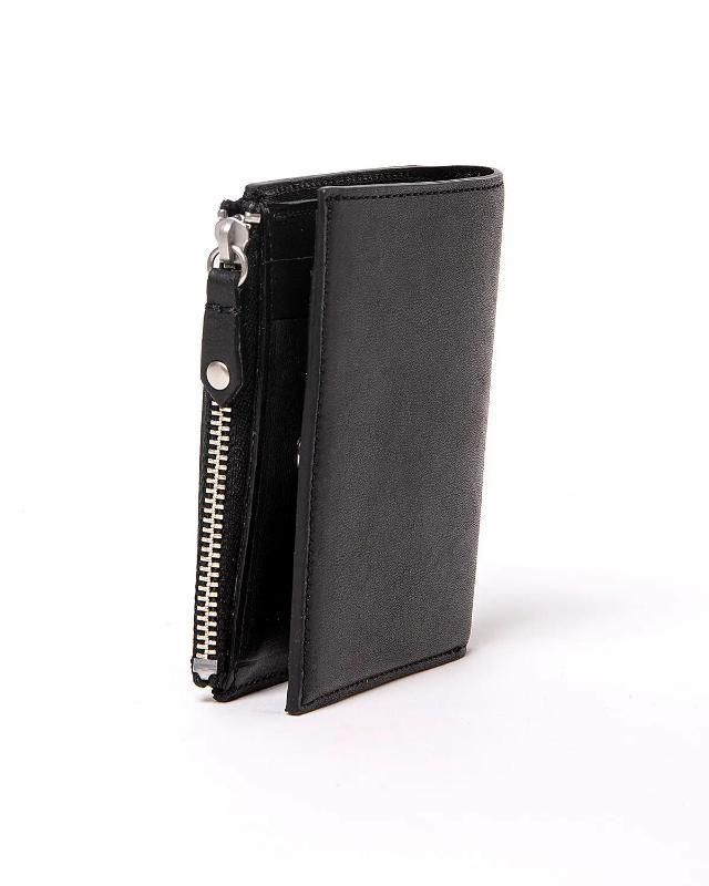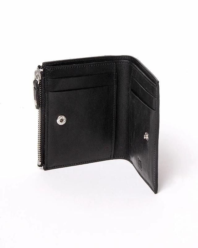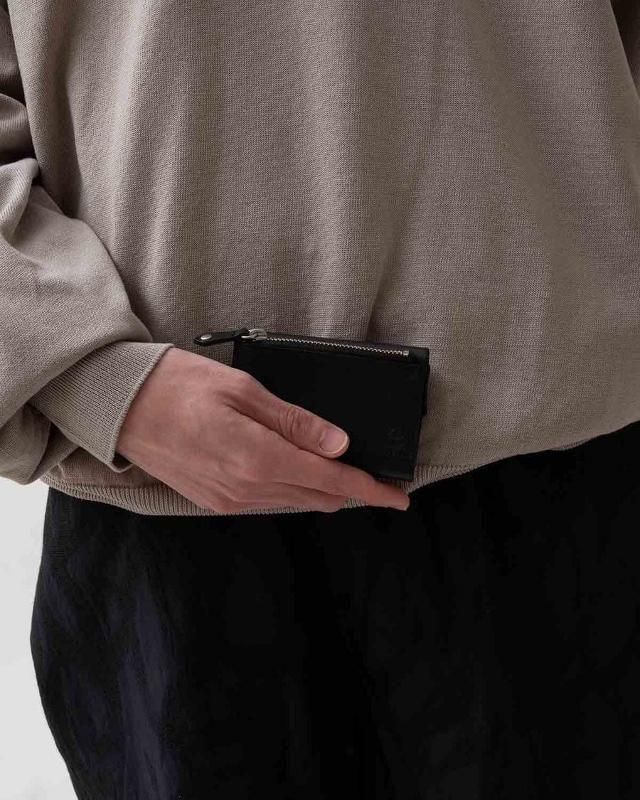 ★hobo 2025 A/W★ 新型二つ折りウォレットです。サイズを抑えながらもコインケースやお札入れ、カードスペースなどしっかりとした収納が出来る設計になっています。レザー部分は馬の傷跡さえも生かし、しっとりとした質感の独特な表情に仕上げることで経年変化も楽しんでいただけます。 コイン:1 / 札入れ:1 / カード:6 material:HORSE LEATHER saiz:W11×L9cm MADE IN JAPAN