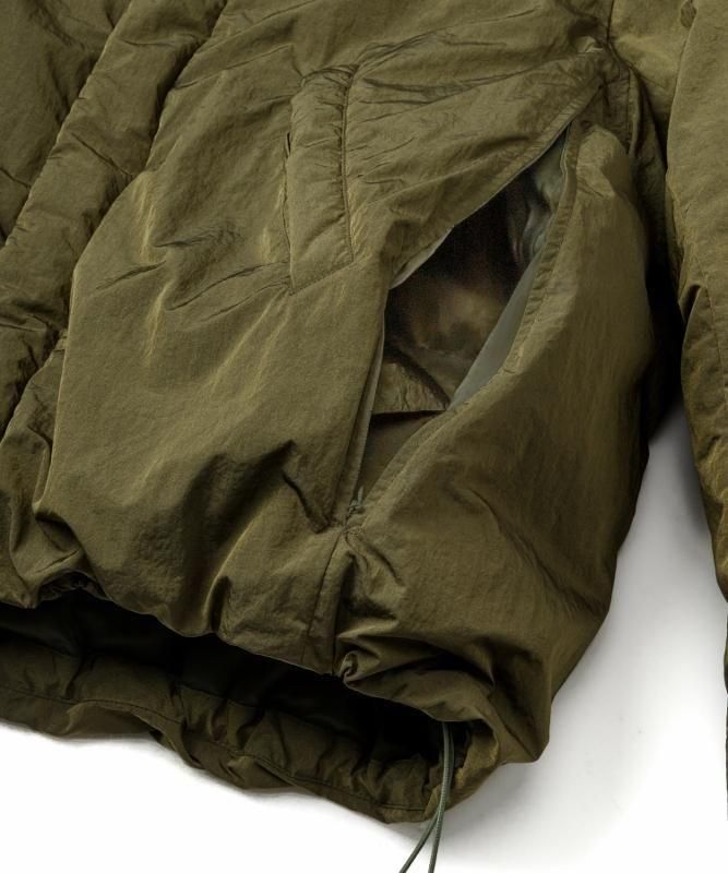 耐摩耗性に優れたCORDURAタフタ生地を使用し、90%のダックダウンをふんだんに使ったダウンジャケットです。生地の特徴は独特な微光沢シャンブレーにワッシャー加工を施していますので、独特な風合いがある素材です。またCORDURAは摩耗・引裂・擦り切れに対する耐性の高さが特徴の高機能素材です。両脇にファスナー付きベンチレーションが付いてますので開閉可能です。フードと裾にはゴム紐が通ってますので、シーンに合わせて絞れます。
